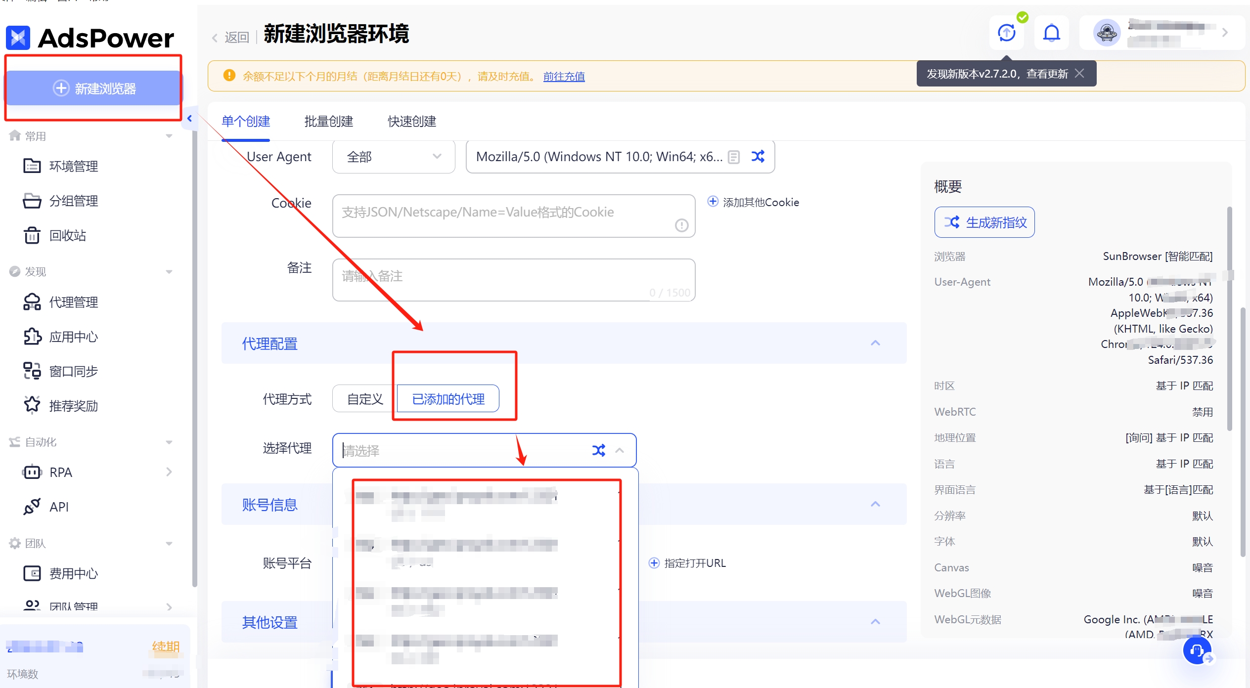 新建浏览器---已添加代理---选中你刚刚添加的代理ip